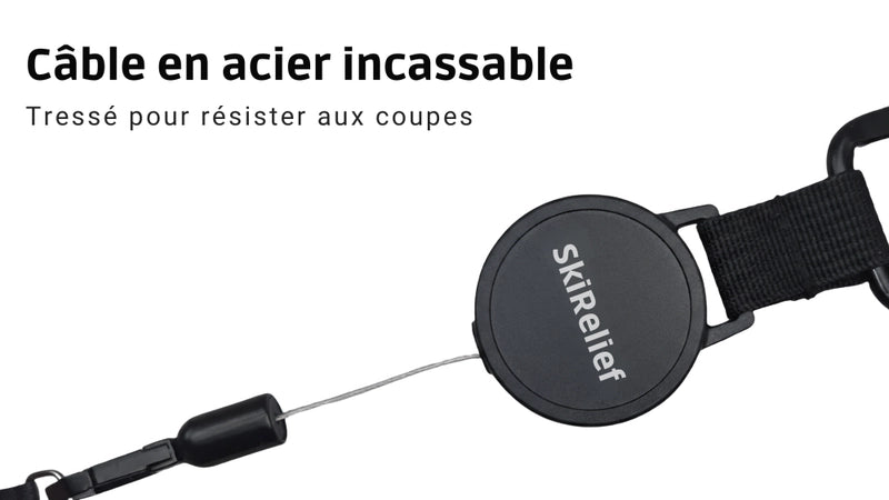 Il est extensible et rétractable, ce qui permet une utilisation confortable sans qu’il ne gêne ni ne pende, même en mouvement (ski, télésiège, marche, etc.).