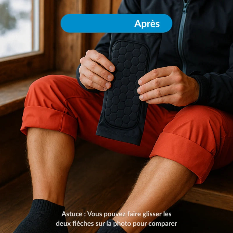 Nos protections SkiPad™ soulagent instantanément grâce à leur mousse épaisse de 10mm et leur structure en nid d’abeille, qui absorbent les chocs et éliminent les points de pression.
